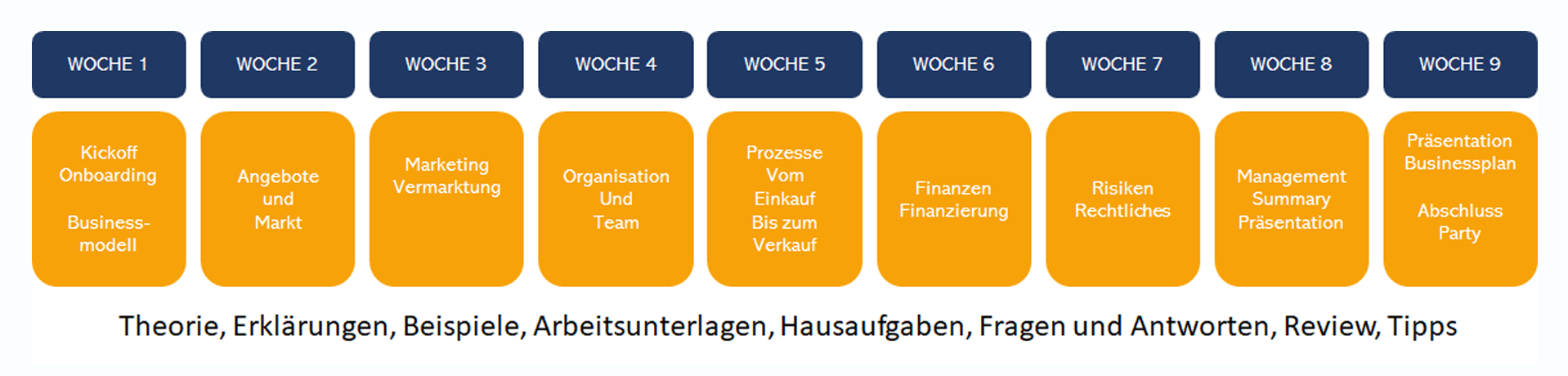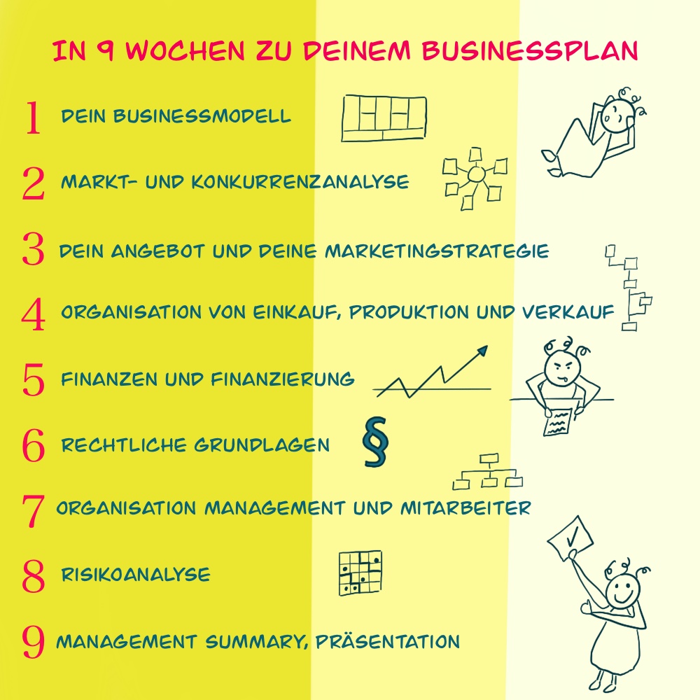 Businessplan schreiben und wöchentliche Feedbacks, Inputs von mir.